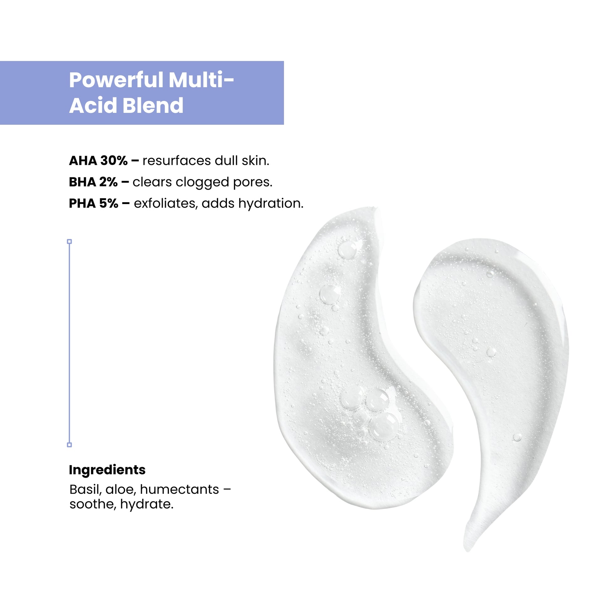 AHA full form is Alpha Hydroxy Acid (surface exfoliation), BHA is Beta Hydroxy Acid (deep pore cleansing), and PHA is Poly-Hydroxy Acid (gentle exfoliation and hydration). Together, they provide multi-layered skin renewal.