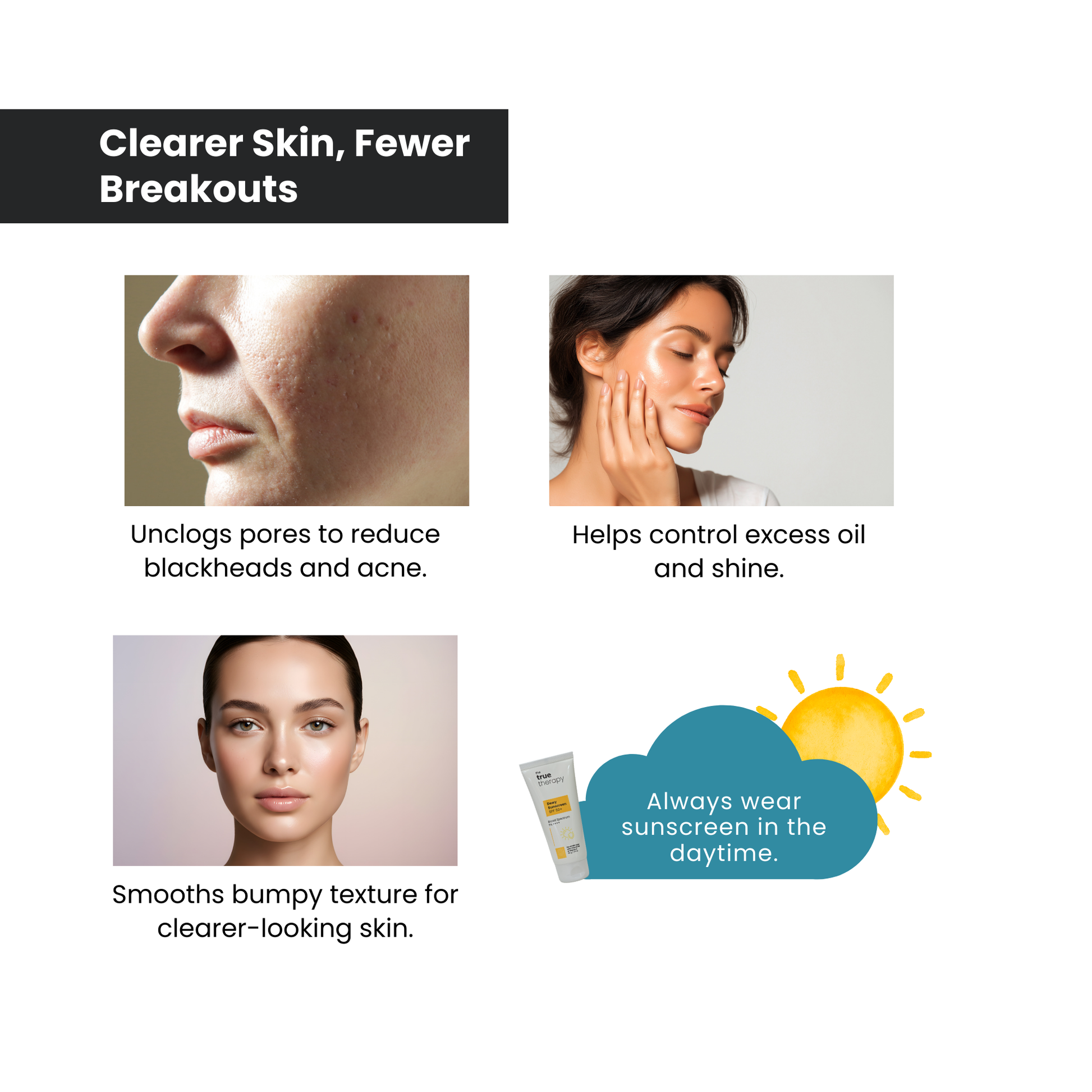 Clears acne, controls oil, smooths bumpy texture — daily use.